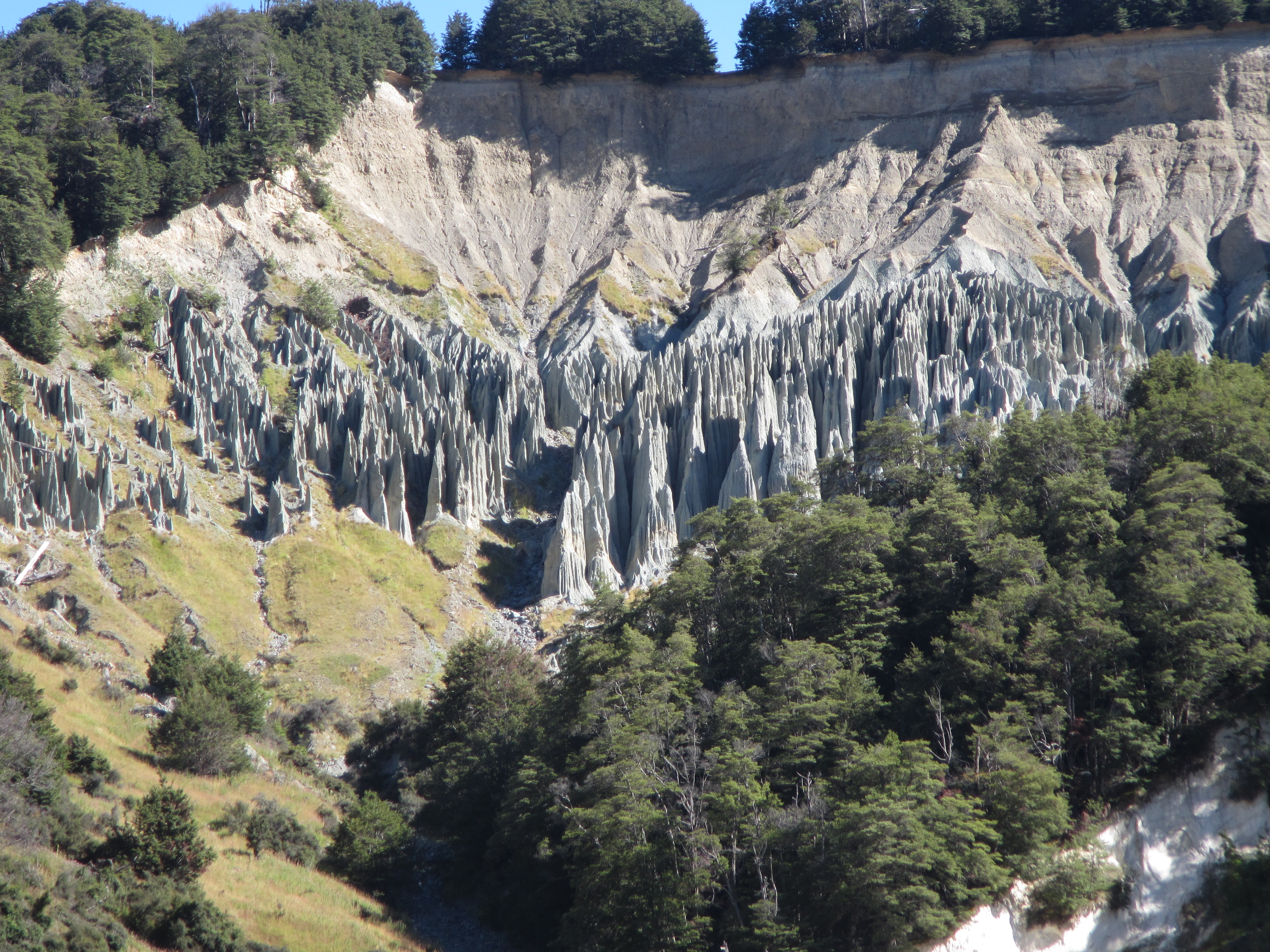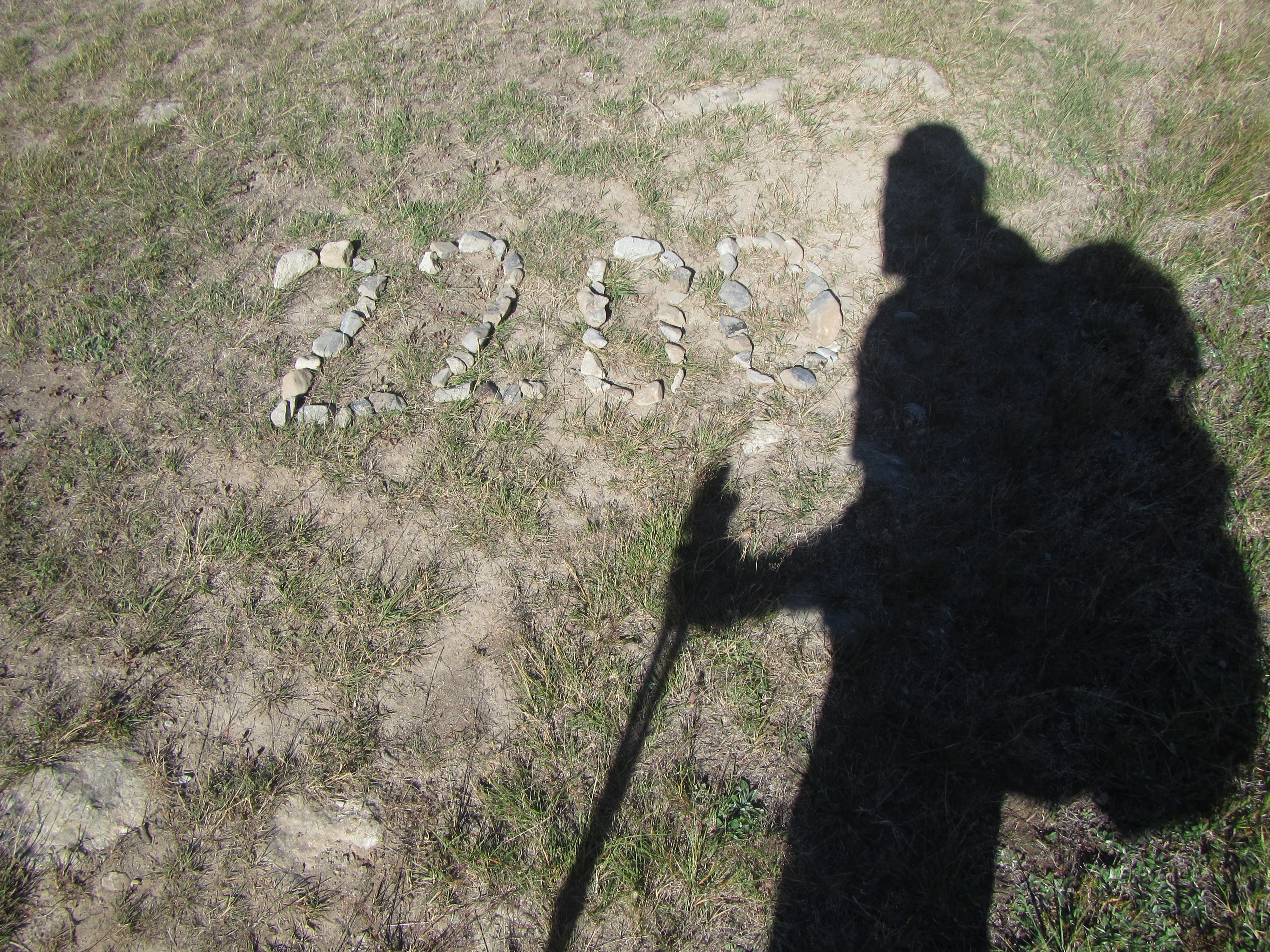 Walking along in my own little world I was thinking I should take some photos. And right then I came upon an arrangement of grey stones contrasting against the dirt marking the 2200 km point. Nice one. Not far from here I passed The Pinnacles, weathered rock formations on the far side of the river, another photo opportunity.