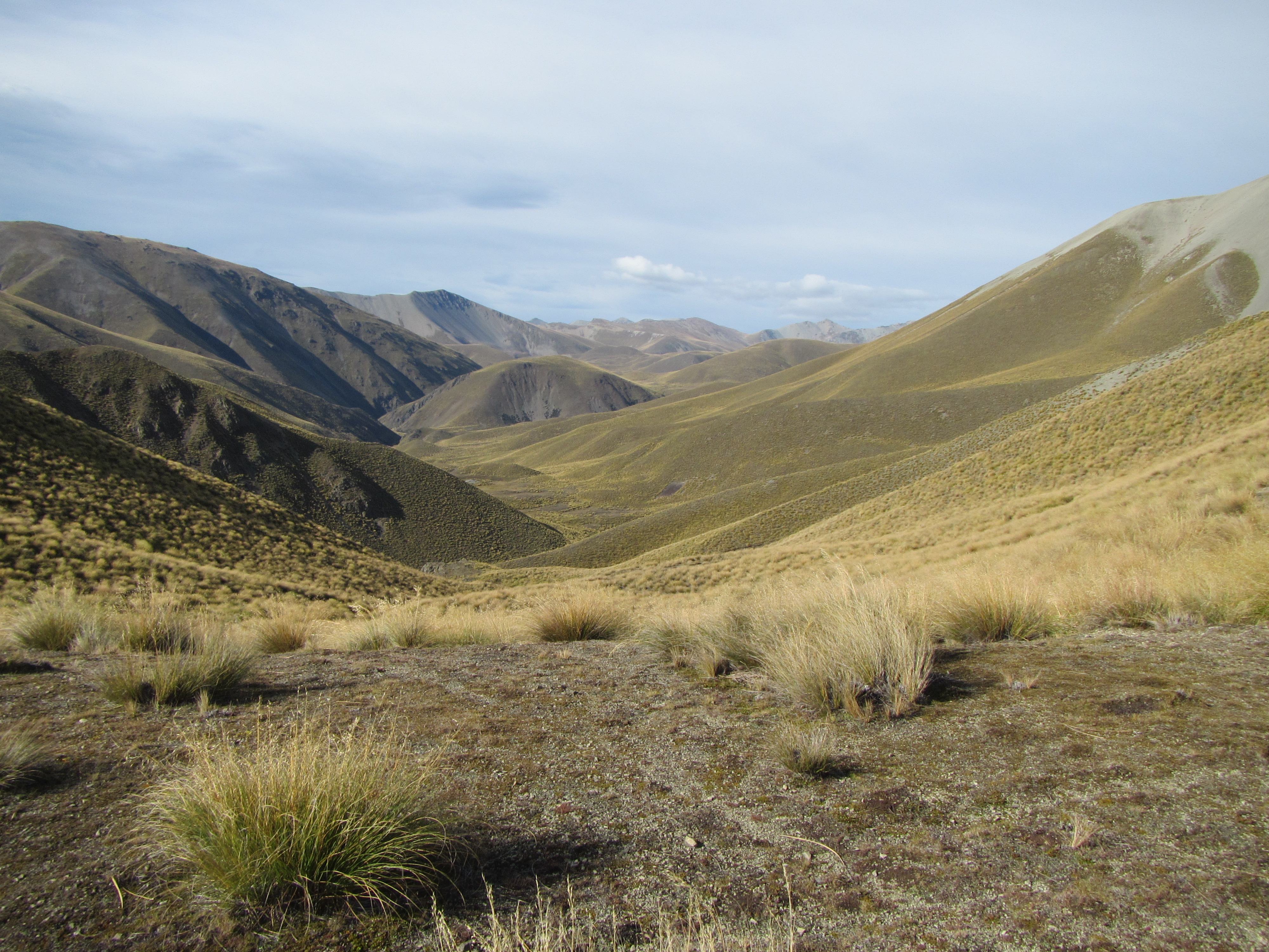 But despite the tussocks walking the mornings terrain was relatively flat. Descending down from the saddle the route followed along an undulating line over a series of small ridges, saddles and the odd stream crossing towards Stone Hut for around 7km.