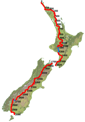 guide_mapCommencing at Cape Reinga lighthouse at the top of the North Island the trail takes in some amazing sites along the 3000 km route.