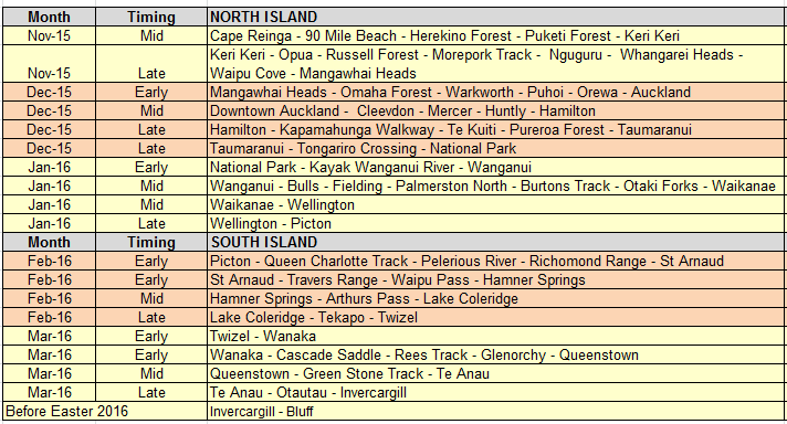 A very, very rough idea of where I’ll be at different times of the walk are listed below. If you are keen to join me for a short section or perhaps multiple sections this will give you an indication of key timings. However it is impossible to have any real concrete plans for such a long walk and any itineraries over a week can be basically be thrown out immediately. Your best bet to find out where I am, how I’m tracking and likely timing of hitting towns is to follow my daily updates, check the TA facebook page, track my SPOT or View Ranger positions.